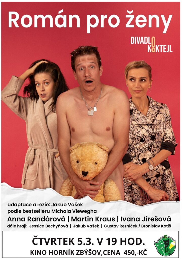 ČTVRTEK 5.3. – div.zpracování filmu, komedie, cena 450,-Kč Divadelní adaptace knižního bestselleru nejčtenějšího českého spisovatele Michala Viewegha. Hlavní hrdinka Laura je jedináček, žije se svojí matkou. Jednoho dne přivede domů muže, představí ho své matce, ovšem její matka tohoto muže už dávno zná. Nastává spousta vtipných a zajímavých dialogů o lidském osudu. Komedie nahlížející na […]